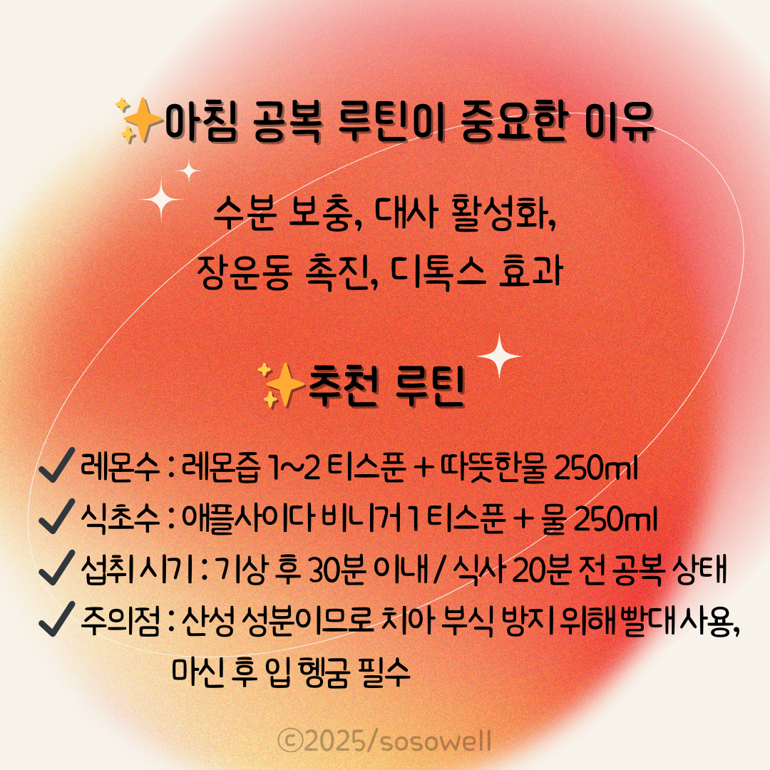👉 공복 루틴으로 식초수도 있어요. 나에게 좋은 아침 루틴은?
