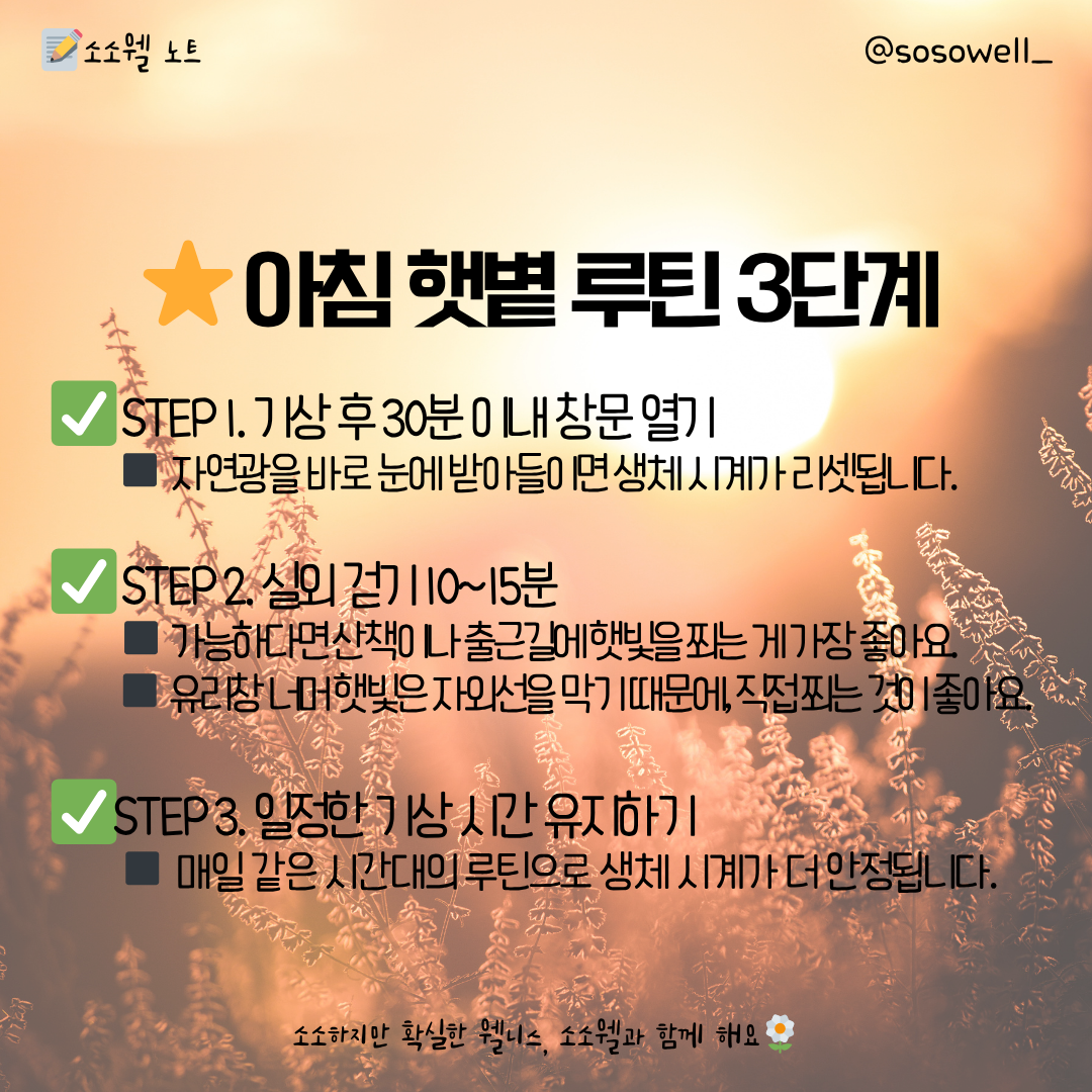 👉 '햇살 한 줌'이 몸과 마음의 리듬을 깨우는 가장 확실한 방법이에요 :)