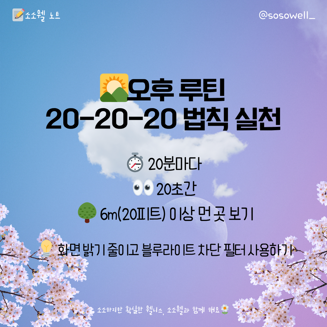 ✅ 20:20:20 법칙 : '미국 검안 협회(AOA)'에서 권장한 눈 건강 수칙 중 하나