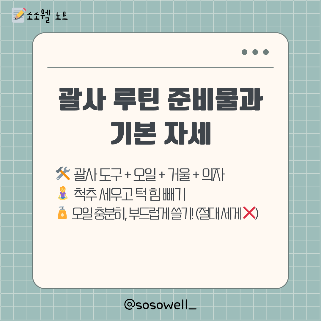 오늘 소소웰노트에서는 간단하지만 효과적인 셀프 괄사 루틴을 소개해드릴게요.