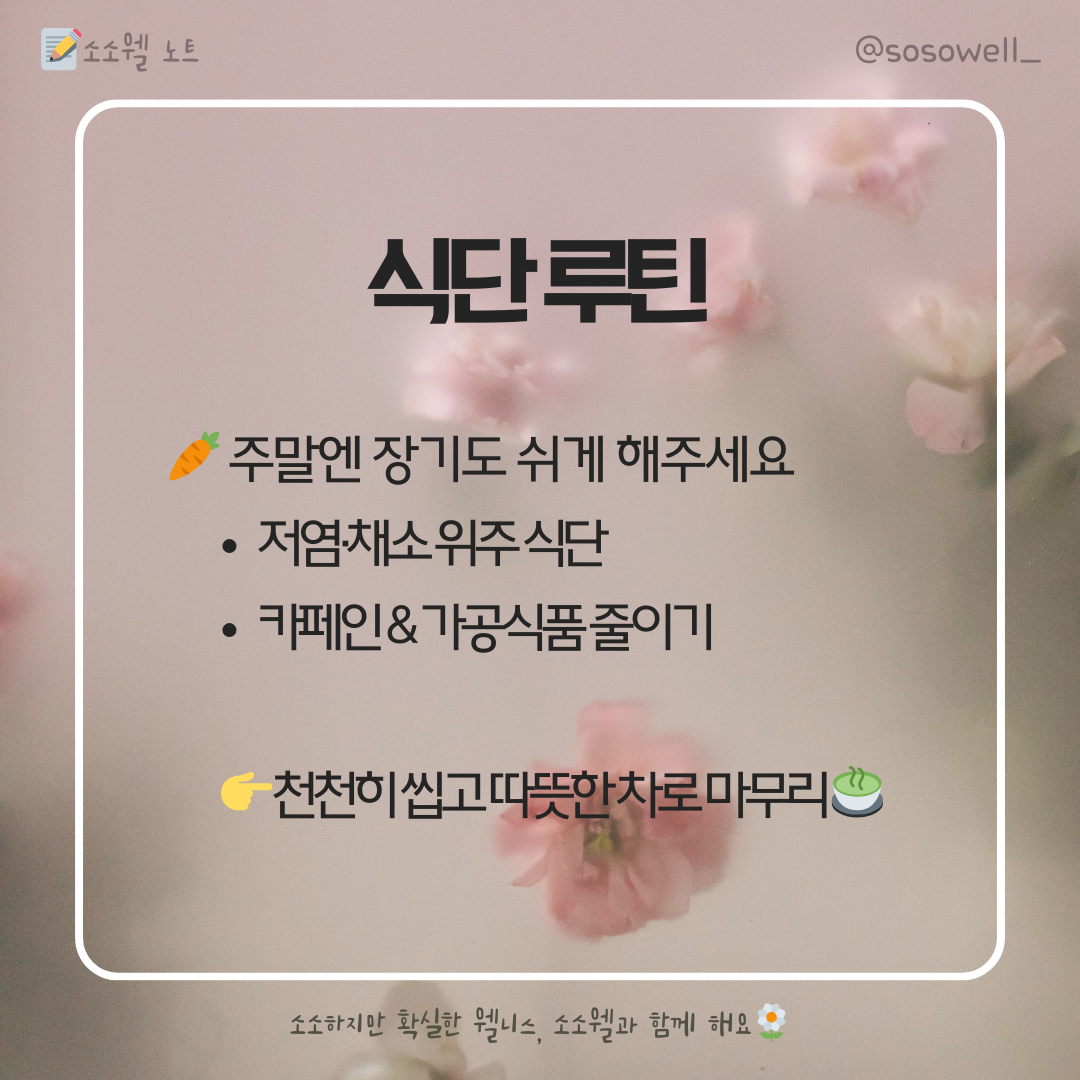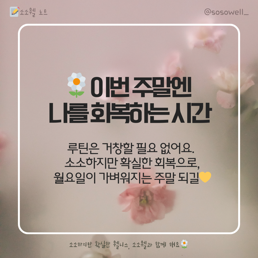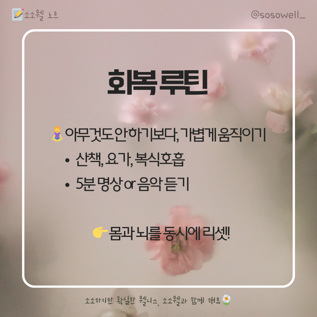👉 몸은 쉬고 싶어 하지만, 루틴이 무너지면 회복이 아닌 피로가 쌓여요.