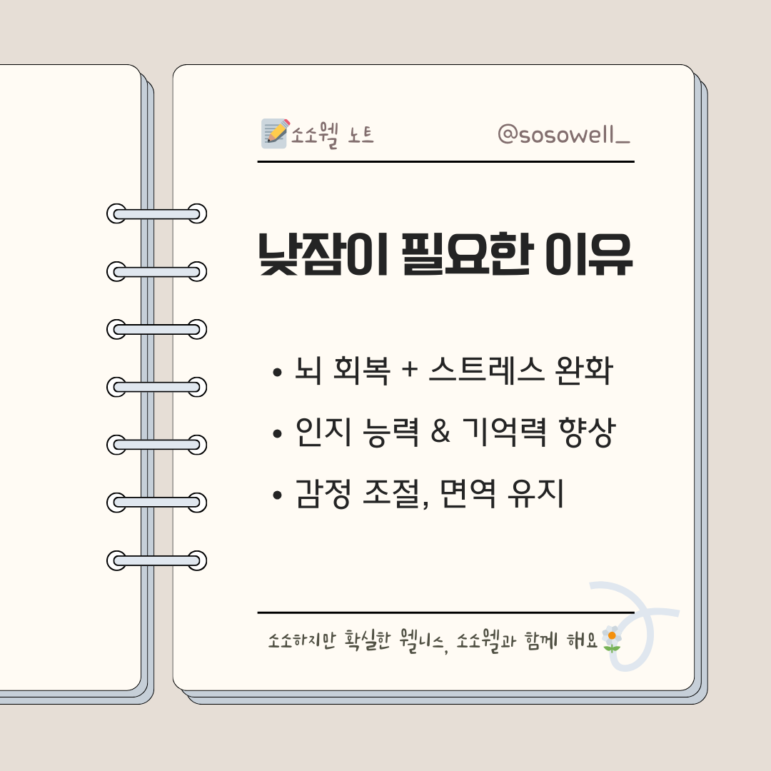 🔹 짧은 낮잠 → 뇌의 정보 정리, 스트레스 완화에 도움