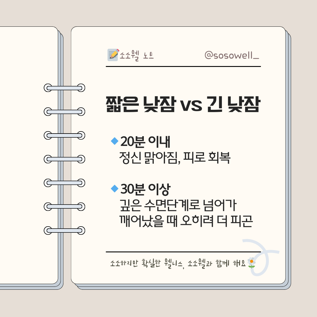 🔹 30분 이상 : 깊은 수면 단계로 넘어가며, 깨어났을 때 오히려 더 피곤할 수 있음